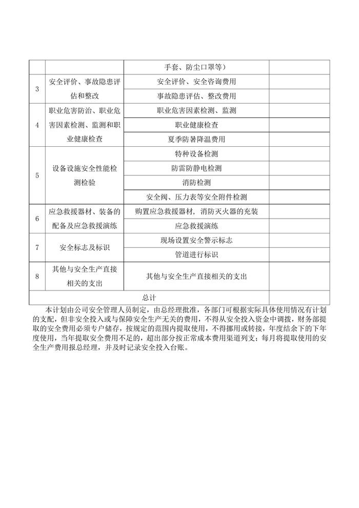 2022年度安全投入計(jì)劃doc