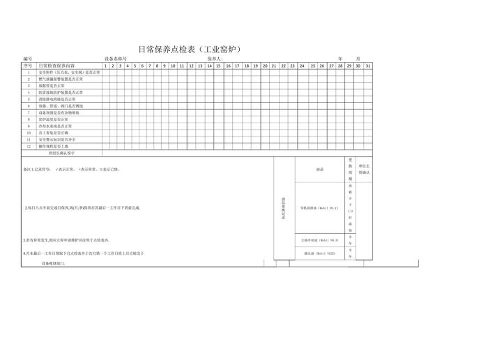 工業(yè)窯爐日常保養(yǎng)點檢表doc