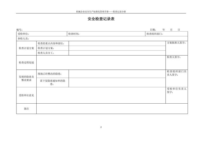 機(jī)械企業(yè)安全標(biāo)準(zhǔn)化:檢查記錄分冊(cè)docx