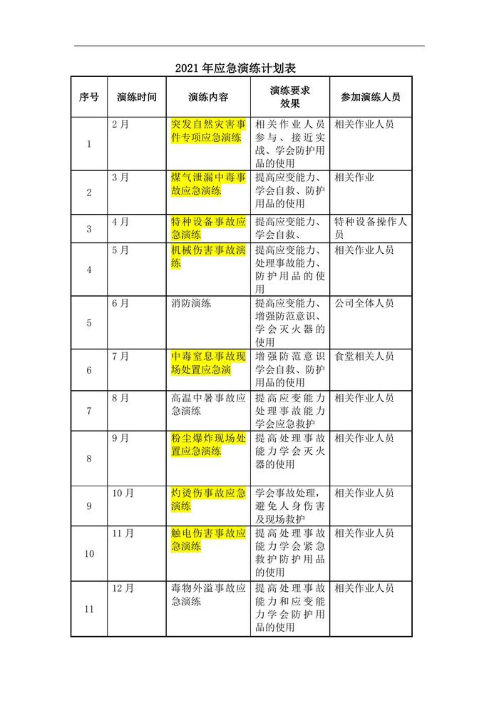 A20220320年度應(yīng)急預(yù)案演練計(jì)劃表docx