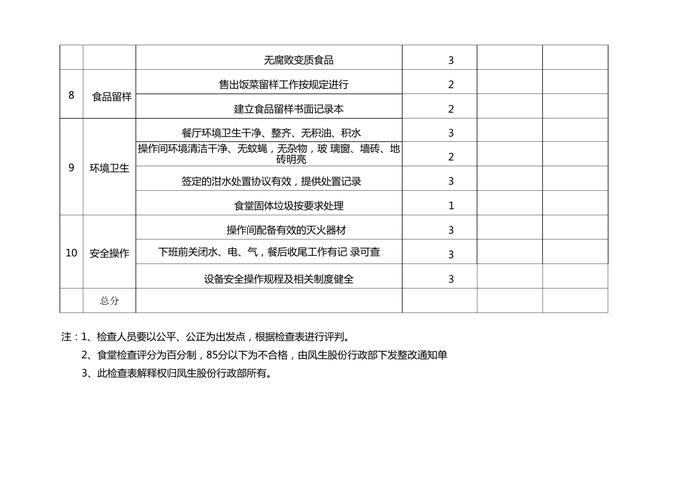 員工食堂食品安全檢查評分表docx