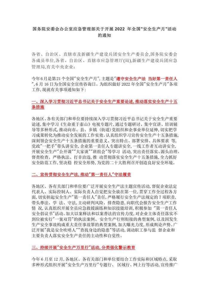 關(guān)于開展2022 年全國安全生產(chǎn)月活動的通知docx
