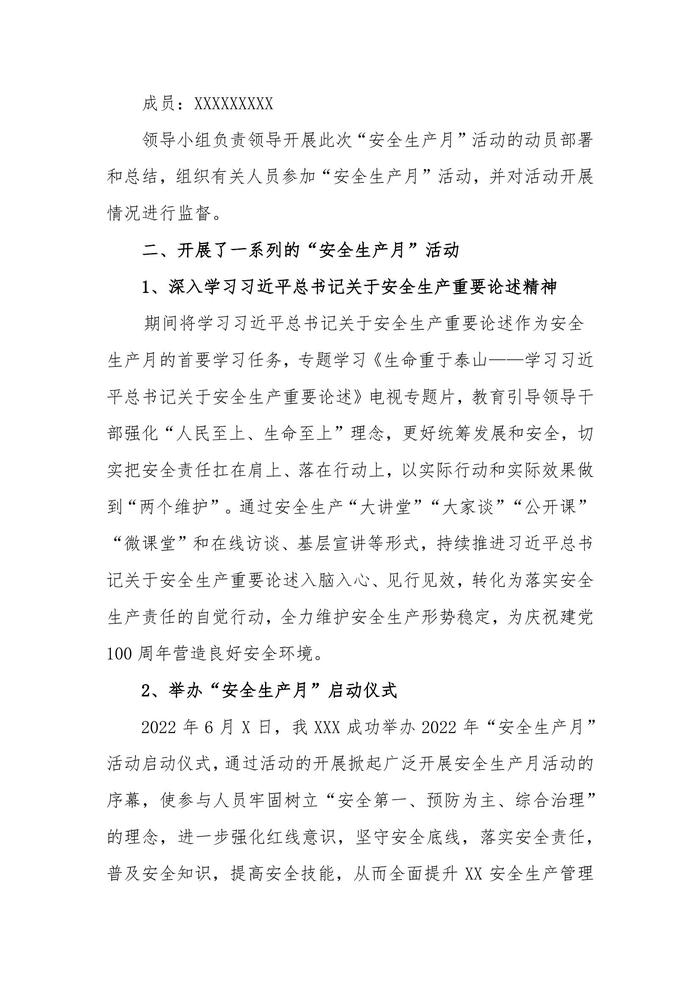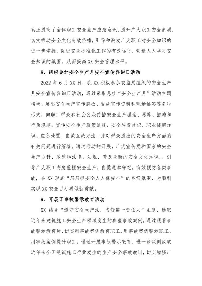 6篇2022年安全月活動總結(jié)匯編docx