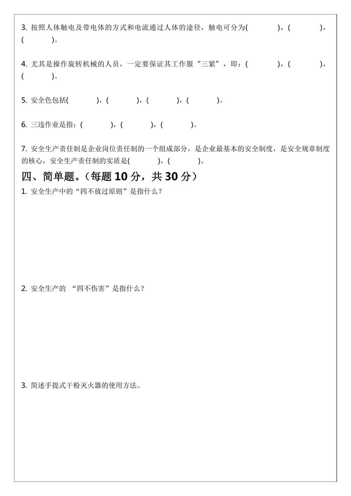三級安全教育試題及答案(公司級)docx