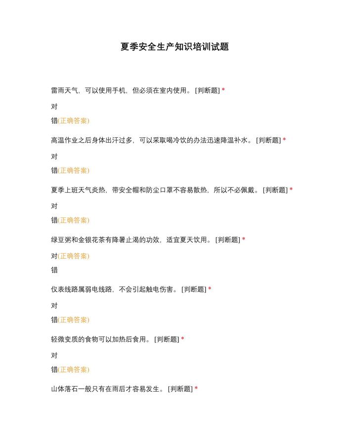 夏季安全生產(chǎn)知識(shí)培訓(xùn)試題docx