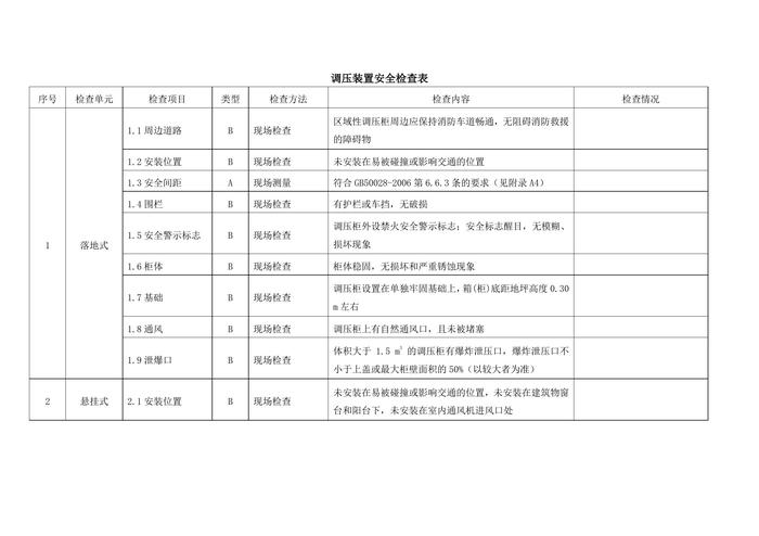 天然氣輸配設(shè)施調(diào)壓裝置安全檢查表docx