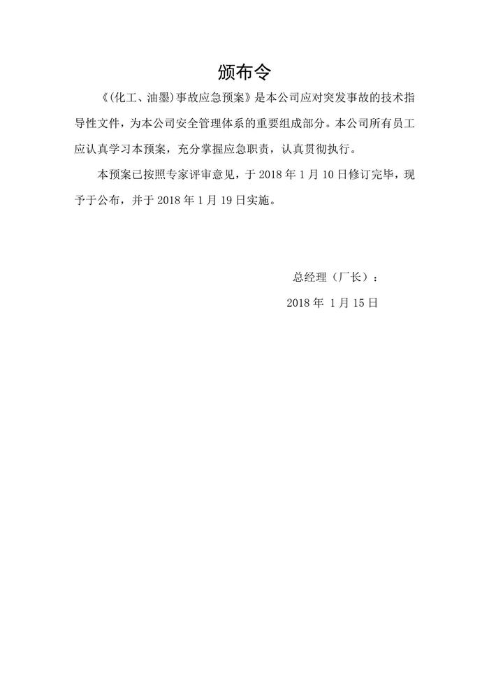化工、油墨企業(yè)生產(chǎn)安全事故應(yīng)急預(yù)案doc 化工、油墨企業(yè)生產(chǎn)安全事故應(yīng)急預(yù)案doc
