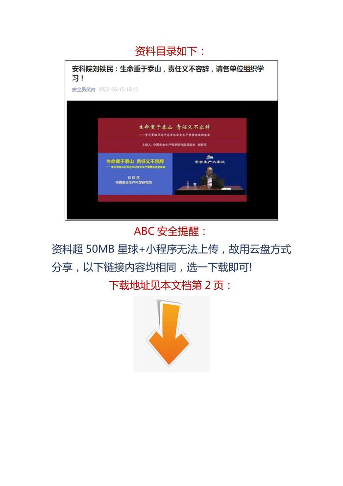 【視頻】安科院劉鐵民:生命重于泰山,責任義不容辭,請各單位組織學習!docx 【視頻】安科院劉鐵民:生命重于泰山,責任義不容辭,請各單位組織學習!docx