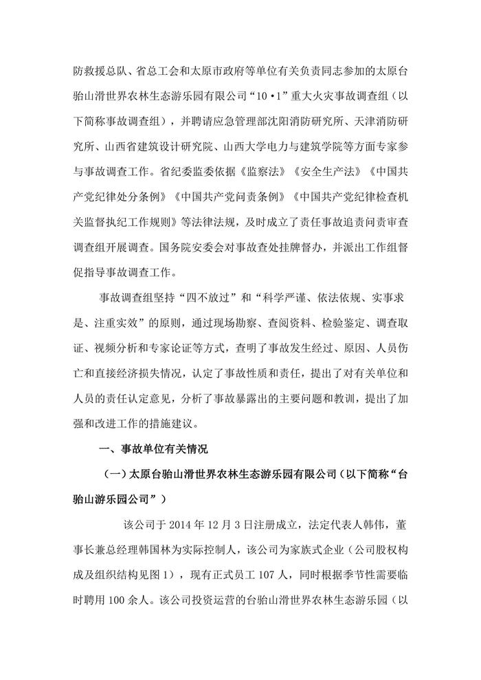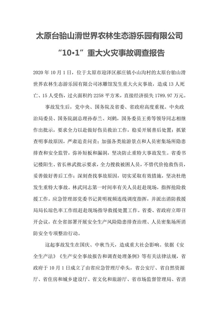 太原臺(tái)駘山滑世界農(nóng)林生態(tài)游樂園有限公司“10·1”重大火災(zāi)事故調(diào)查報(bào)告doc
