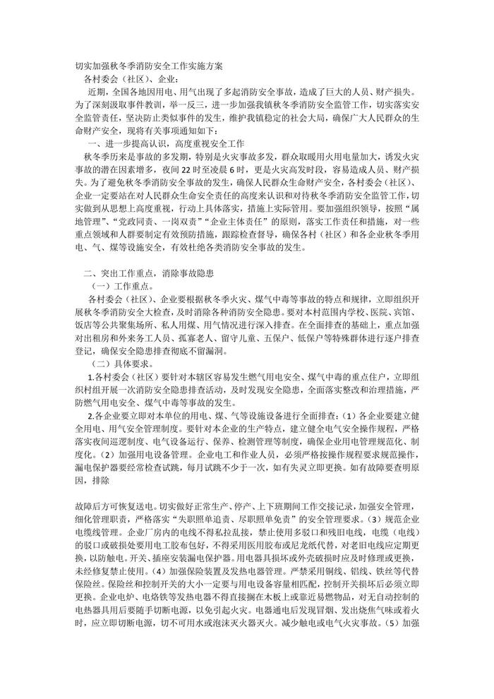 切實(shí)加強(qiáng)秋冬季消防安全工作實(shí)施方案docx