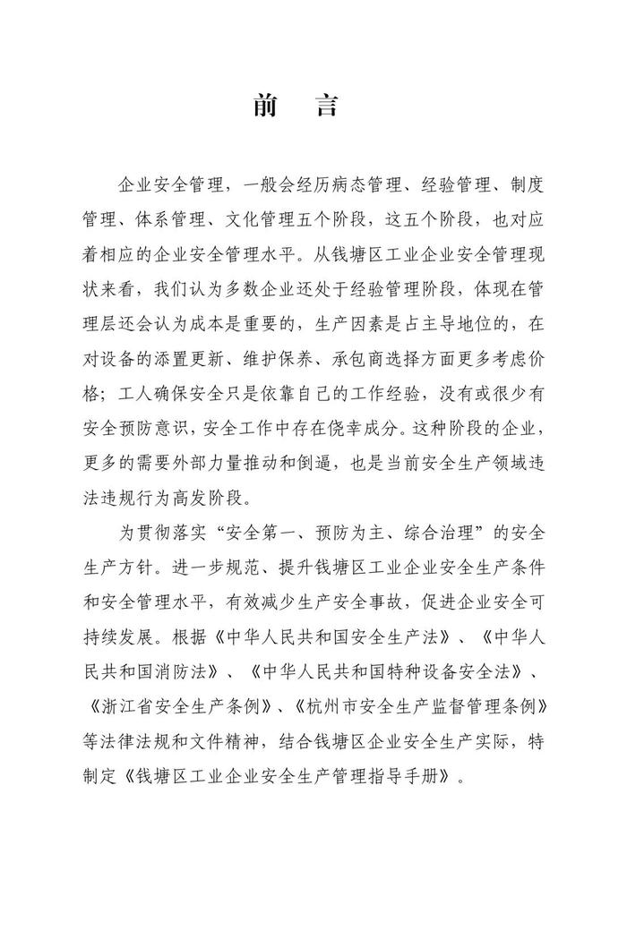 杭州市錢塘區(qū)工業(yè)企業(yè)安全生產(chǎn)管理指導(dǎo)手冊(cè)pdf