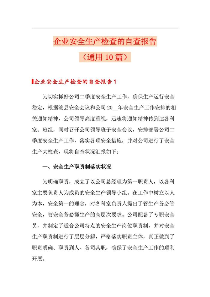 10篇企業(yè)通用安全生產(chǎn)檢查的自查報(bào)告docx