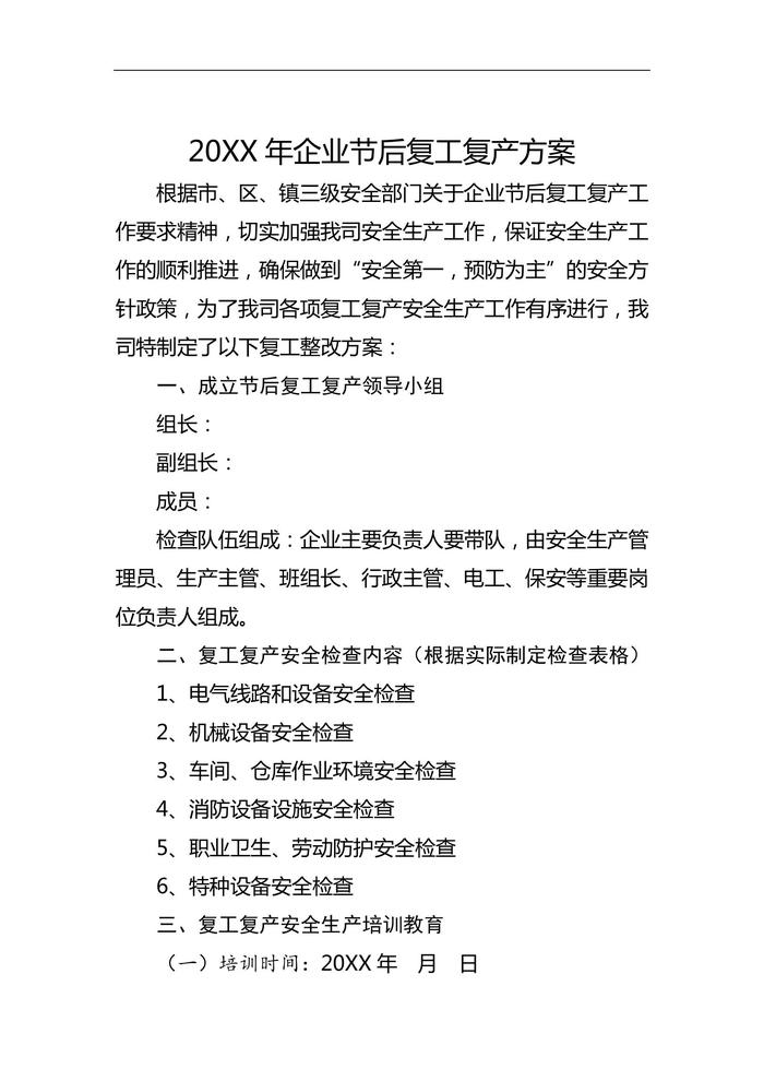 春節(jié)后復(fù)工復(fù)產(chǎn)“三個一”資料樣板(1)doc