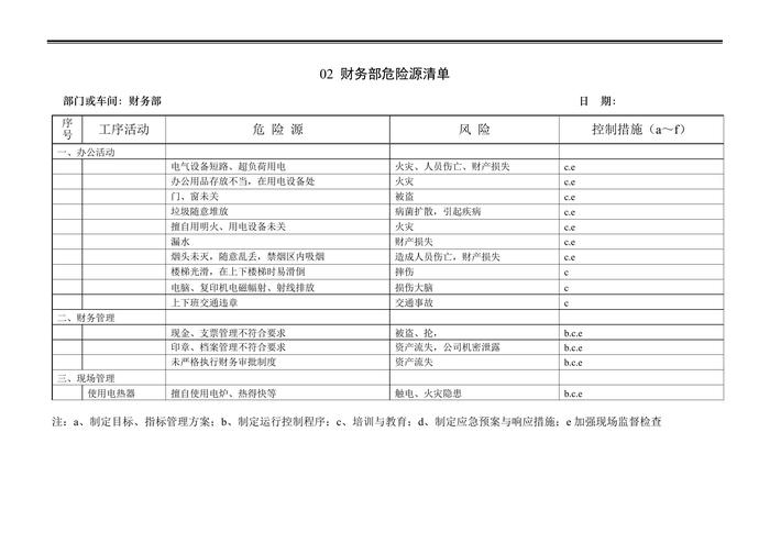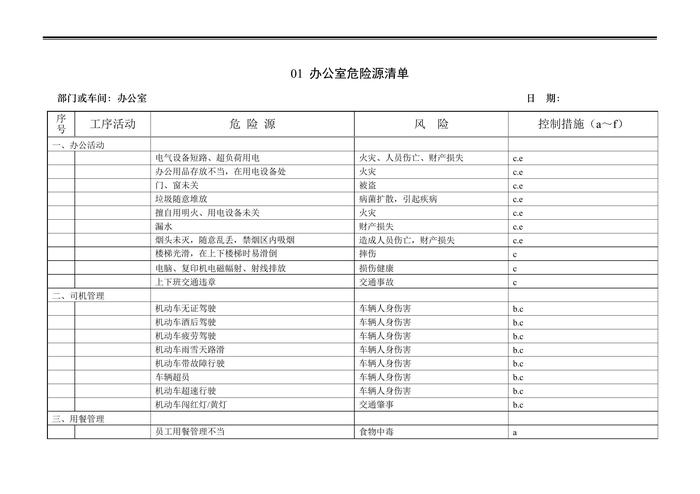 公司各部門車間危險(xiǎn)源清單docx