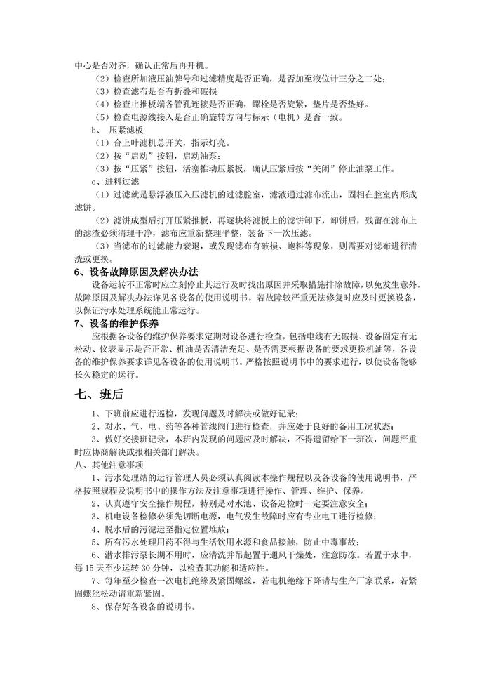 污水處理站操作規(guī)程docx
