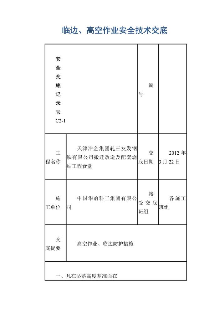臨邊、高空作業(yè)安全技術(shù)交底doc