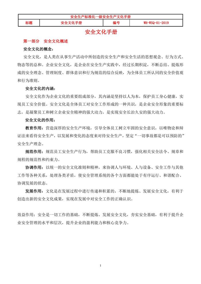 安全標(biāo)準(zhǔn)化一級(jí)企業(yè)創(chuàng)建《安全文化手冊(cè)》doc