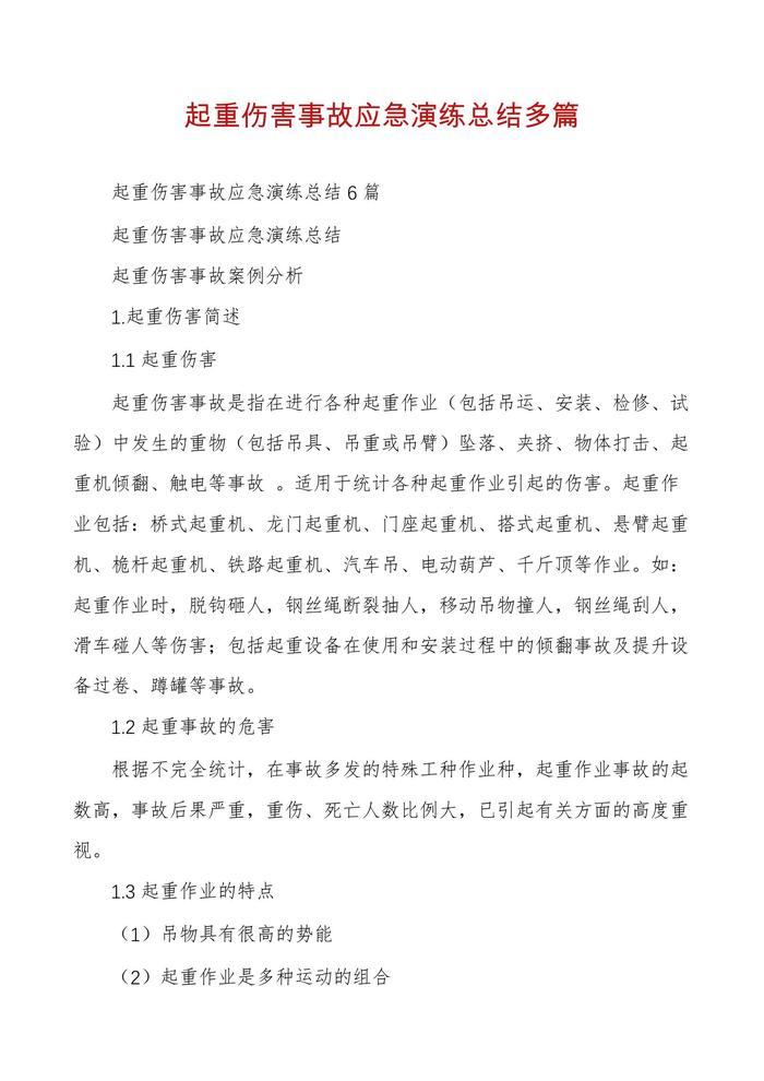 起重傷害事故應(yīng)急演練總結(jié)多篇docx