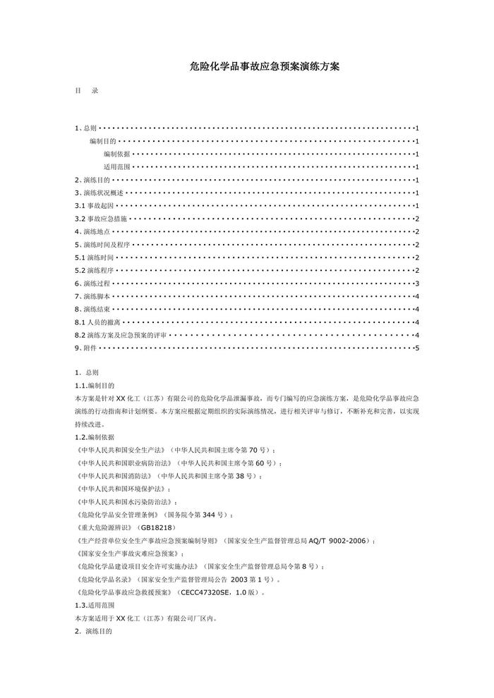 某倉庫危險(xiǎn)化學(xué)品事故應(yīng)急預(yù)案演練方案doc