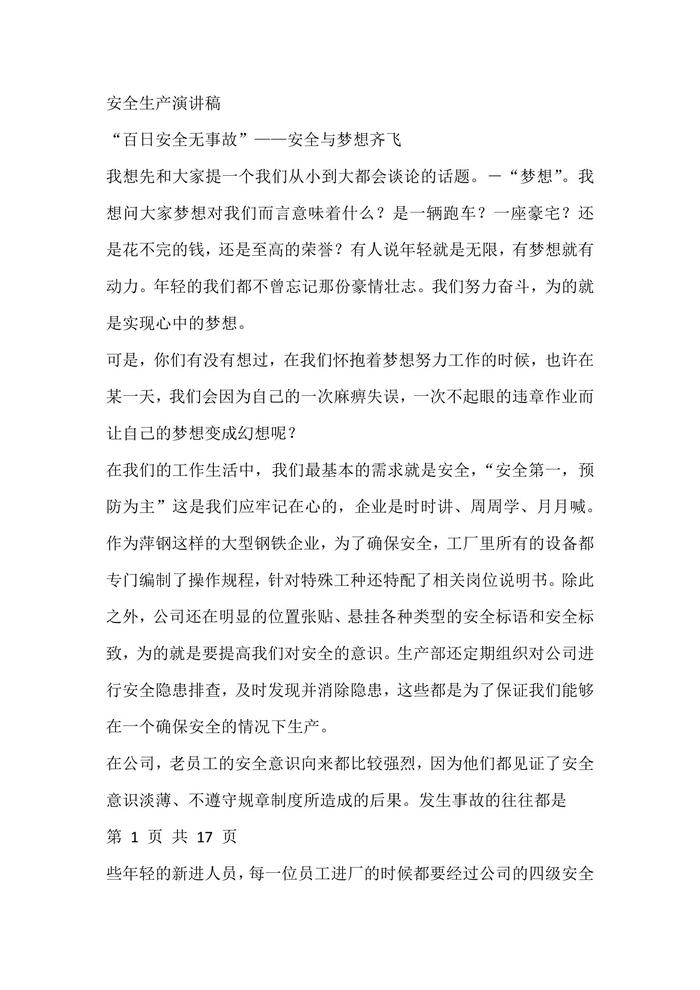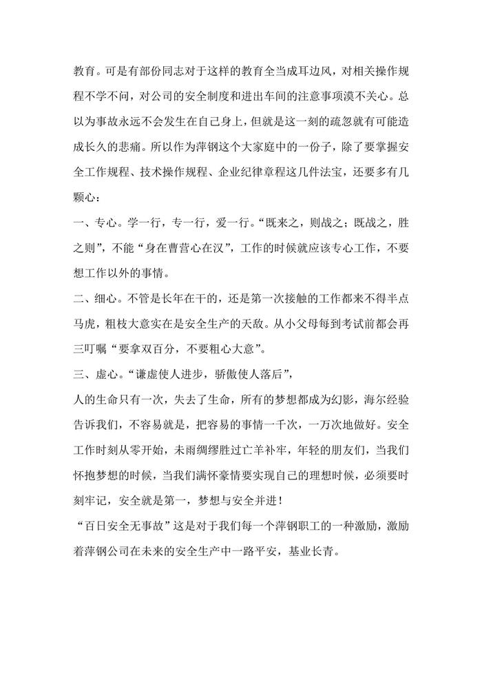 安全生產(chǎn)演講稿2:“百日安全無事故”——安全與夢想齊飛docx