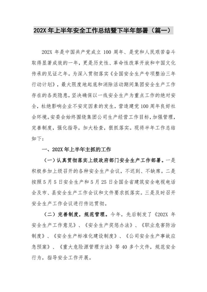 2022上半年安全生產(chǎn)工作總結(jié)暨下半年工作部署10篇匯編docx
