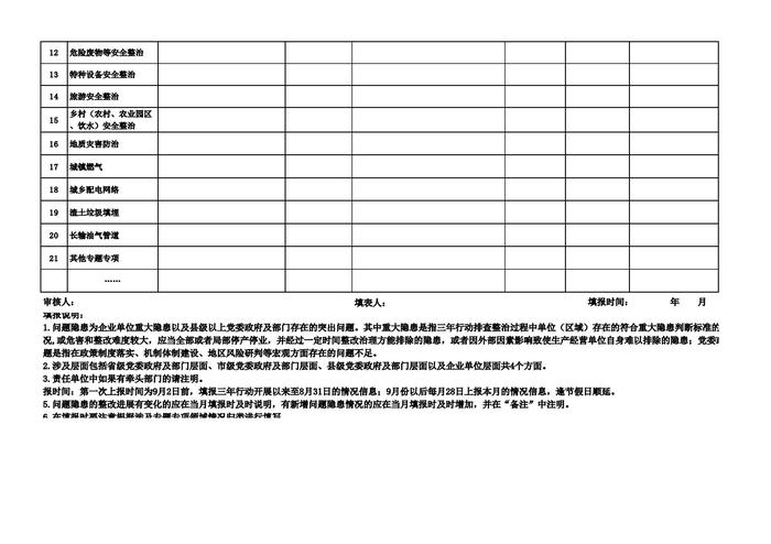 安全生產(chǎn)專項整治三年行動發(fā)現(xiàn)的突出問題和重大隱患清單(樣表)xls
