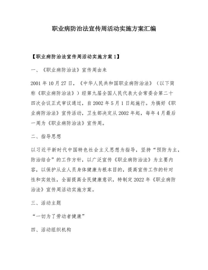 四篇《2022職業(yè)病防治法宣傳周活動實施方案》docx