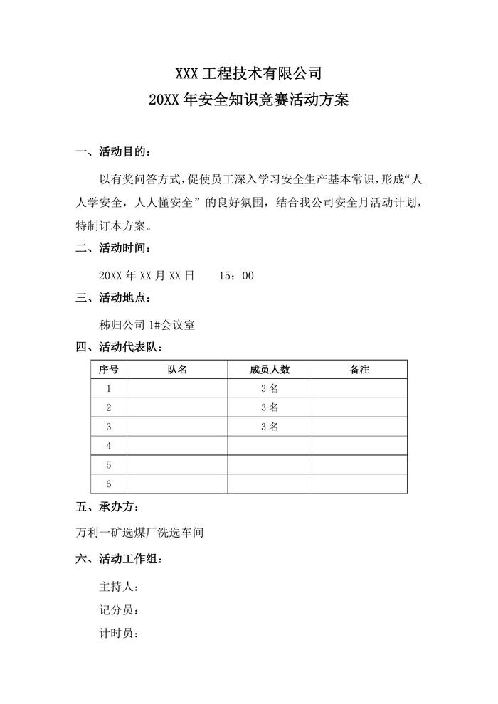 公司安全知識(shí)競(jìng)賽活動(dòng)方案docx