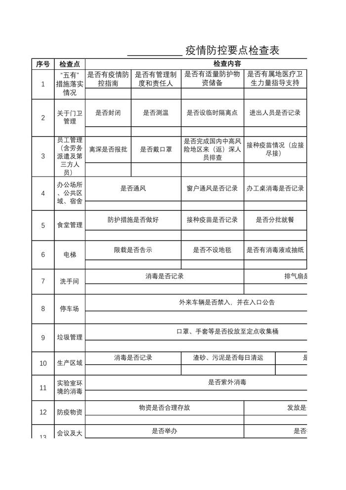 各單位疫情防控要點(diǎn)檢查表xlsx