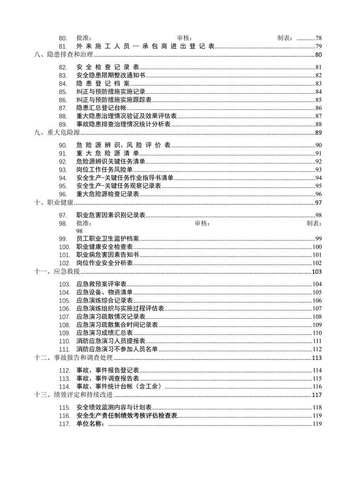 安全生產(chǎn)標(biāo)準(zhǔn)化記錄表格臺(tái)賬匯編doc