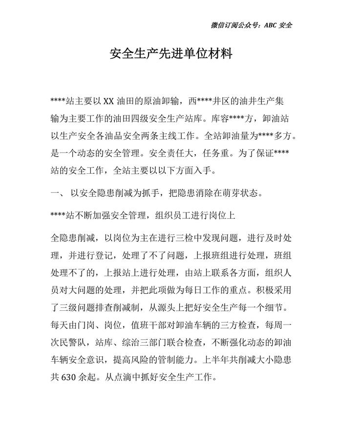 安全生產(chǎn)先進(jìn)單位事跡材料(1)docx