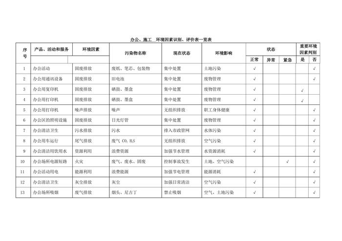 辦公、施工環(huán)境因素識別、評價一覽表docx