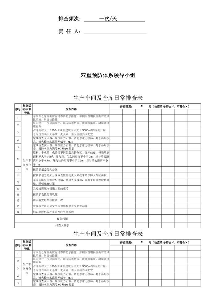 生產(chǎn)車間及倉庫日常排查表doc