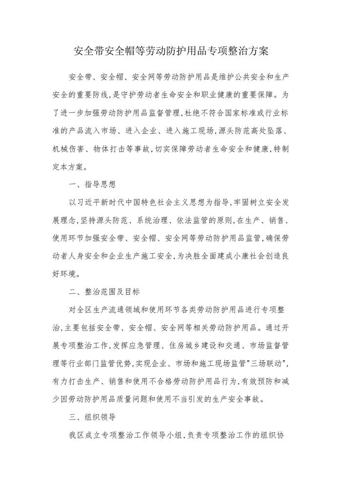 安全帶安全帽等勞動(dòng)防護(hù)用品專(zhuān)項(xiàng)整治方案doc