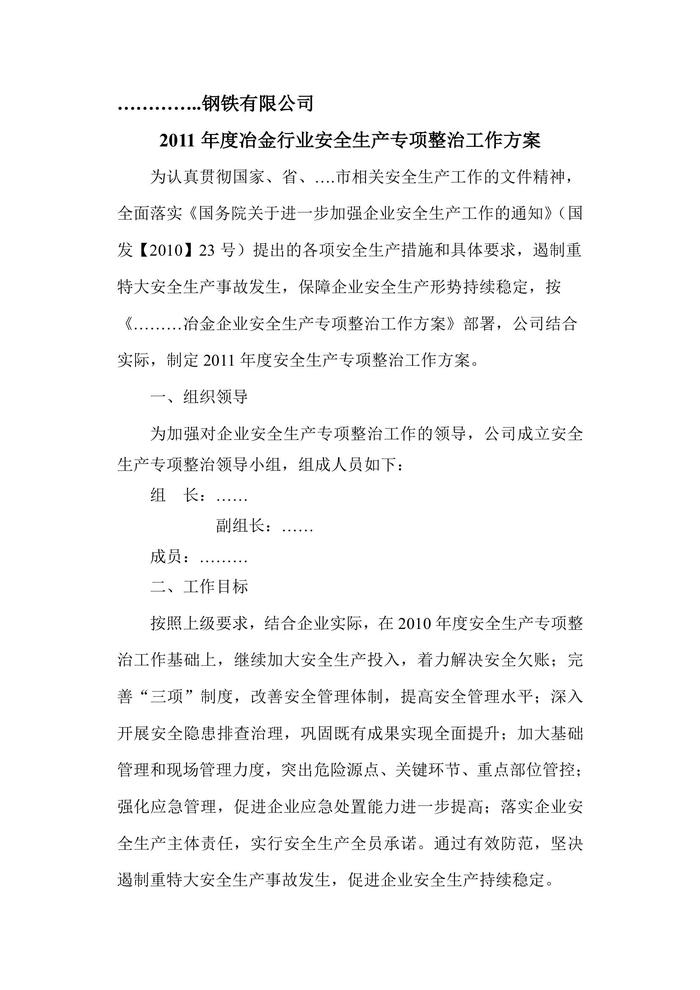 冶金企業(yè)安全生產(chǎn)專項(xiàng)整治方案doc