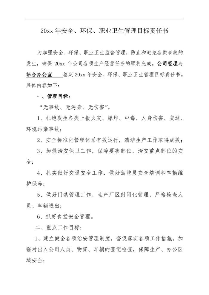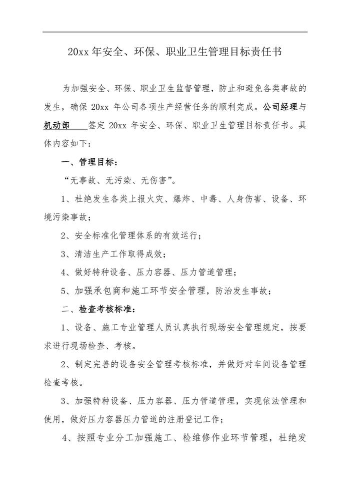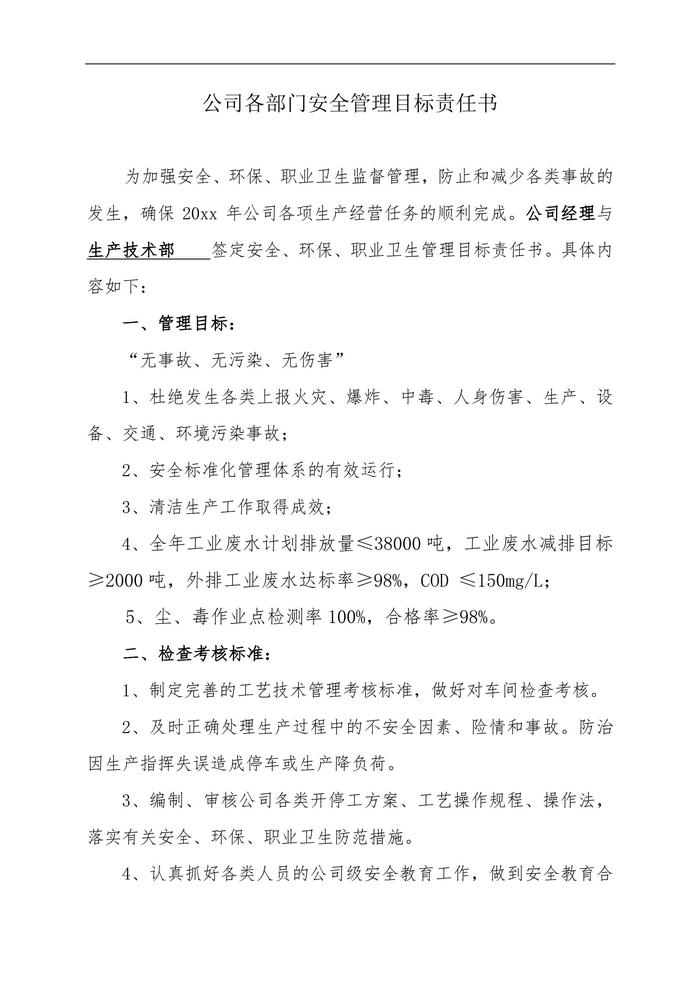 公司各部門安全管理目標(biāo)責(zé)任書(30頁)doc