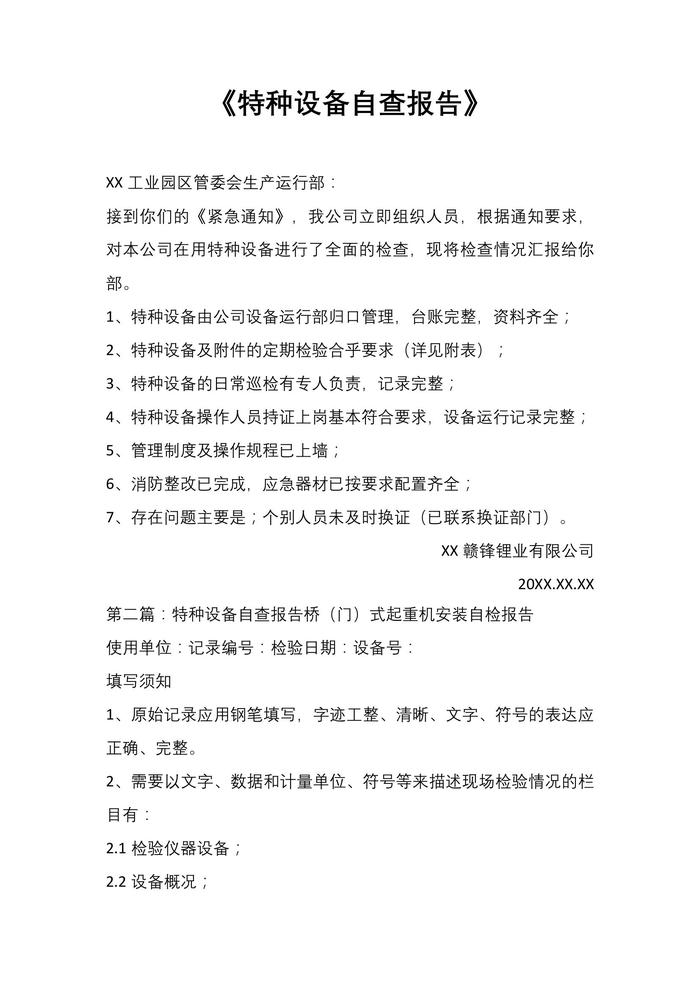 特種設(shè)備自查報告docx