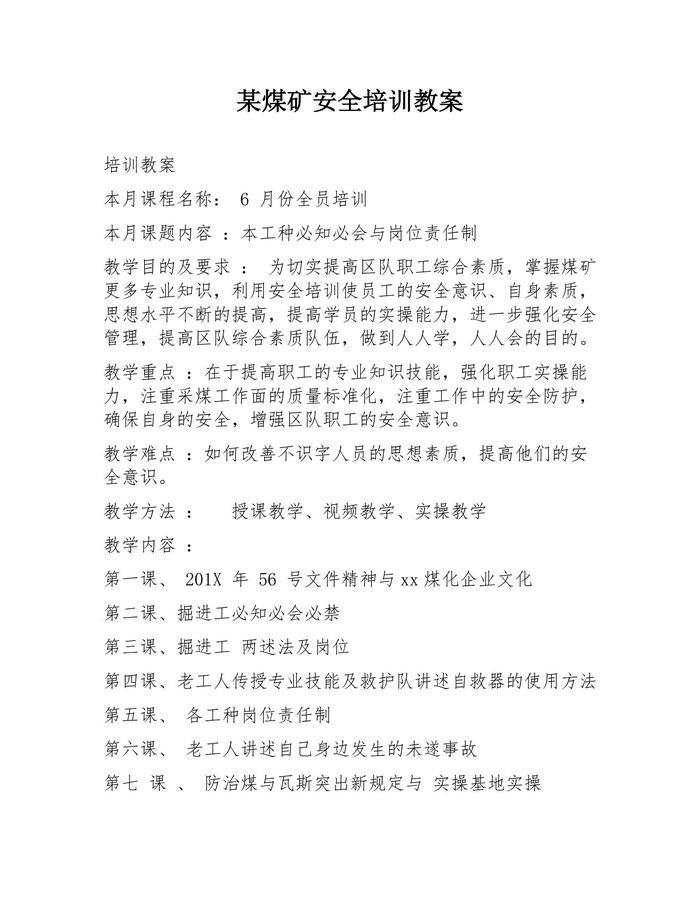 某煤礦安全培訓(xùn)教案(20頁)docx