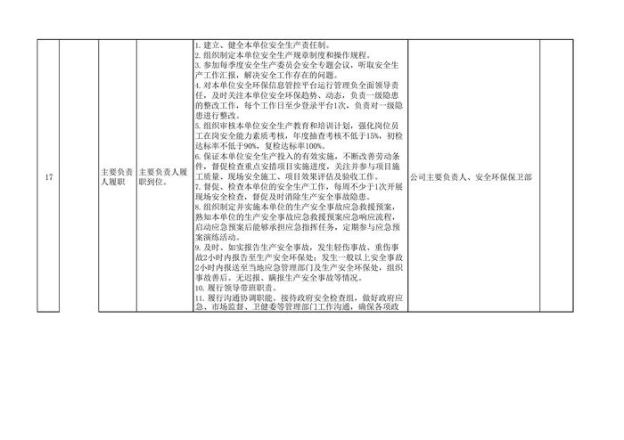 2022年國(guó)務(wù)院安全生產(chǎn)大檢查迎檢專項(xiàng)安全檢查責(zé)任清單docx