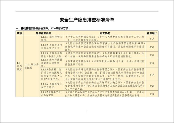 通用版安全生產(chǎn)隱患排查標(biāo)準(zhǔn)清單(附法律依據(jù))doc