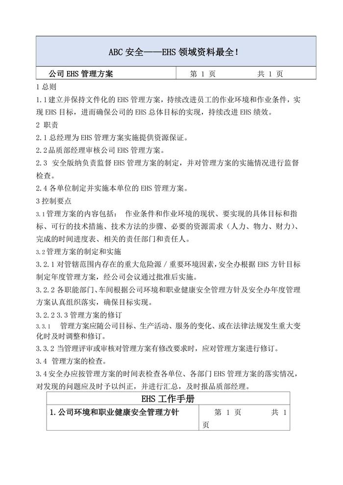 公司EHS管理方案docx