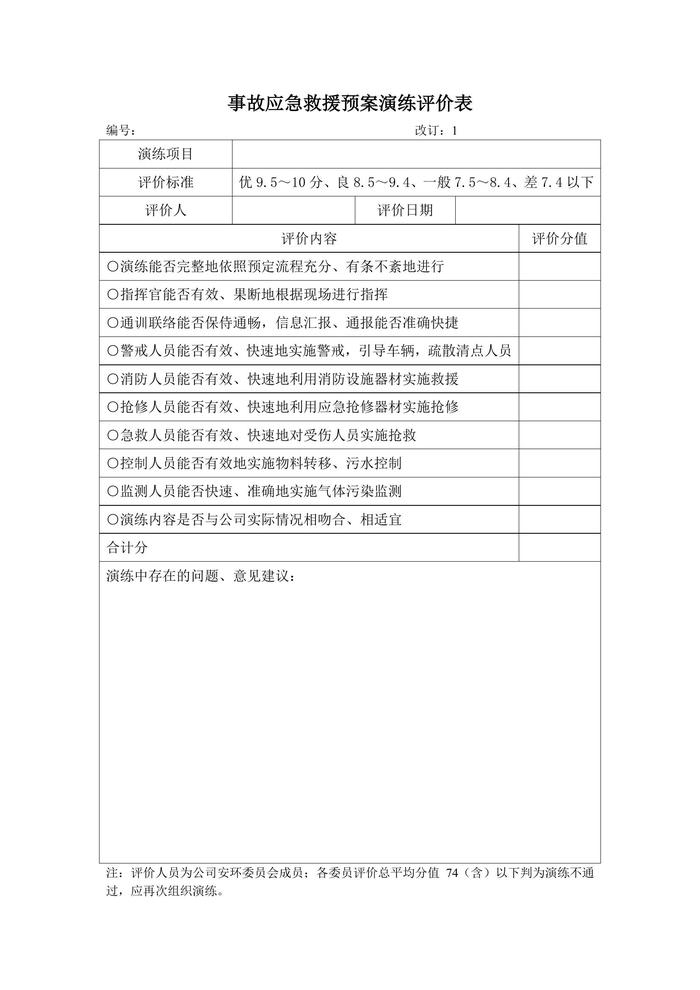 事故應(yīng)急救援預(yù)案演練評(píng)價(jià)表doc