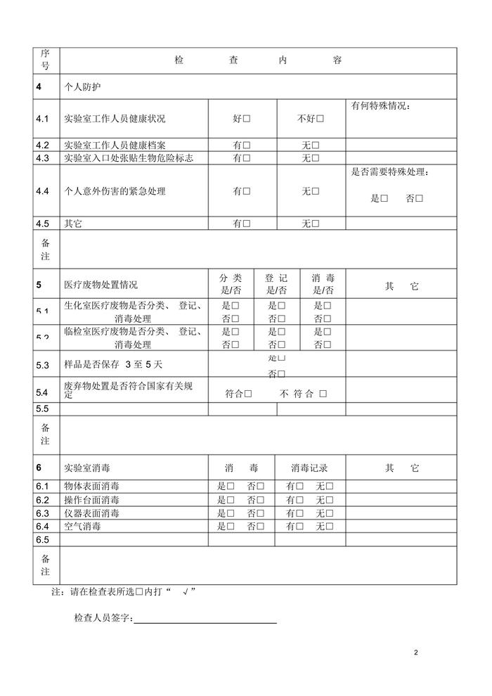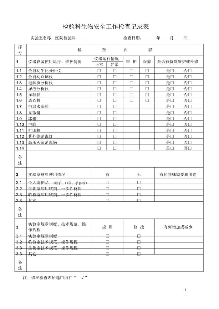實驗室生物安全工作檢查記錄表docx