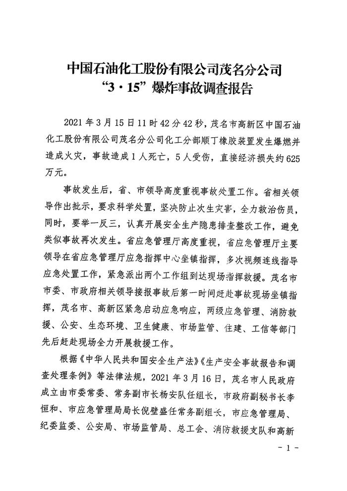中石化茂名分公司“3·15”爆炸事故調(diào)查報(bào)告pdf