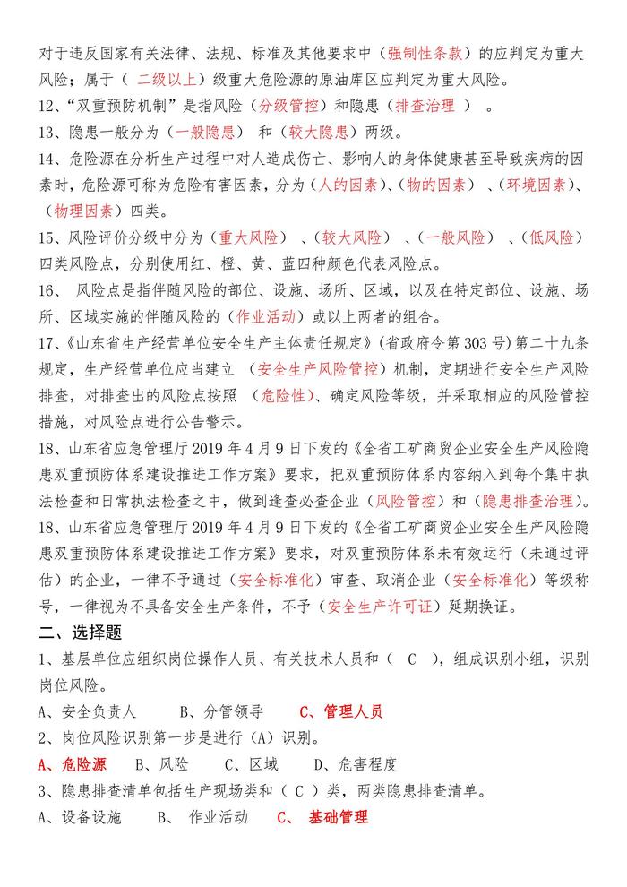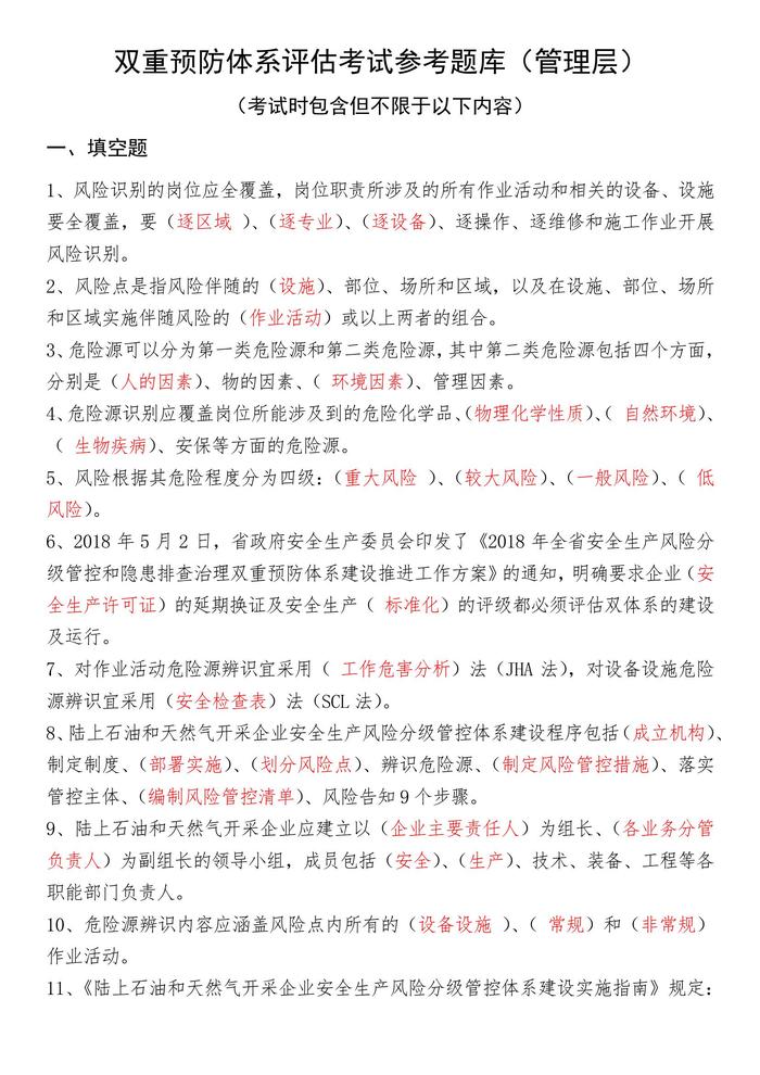 雙重預(yù)防體系評估考試參考題庫(管理層、基層)docx 雙重預(yù)防體系評估考試參考題庫(管理層、基層)docx