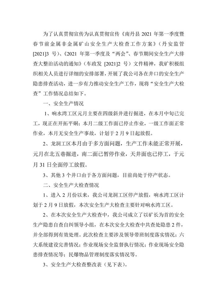 礦山安全生產(chǎn)大檢查工作總結(jié)doc