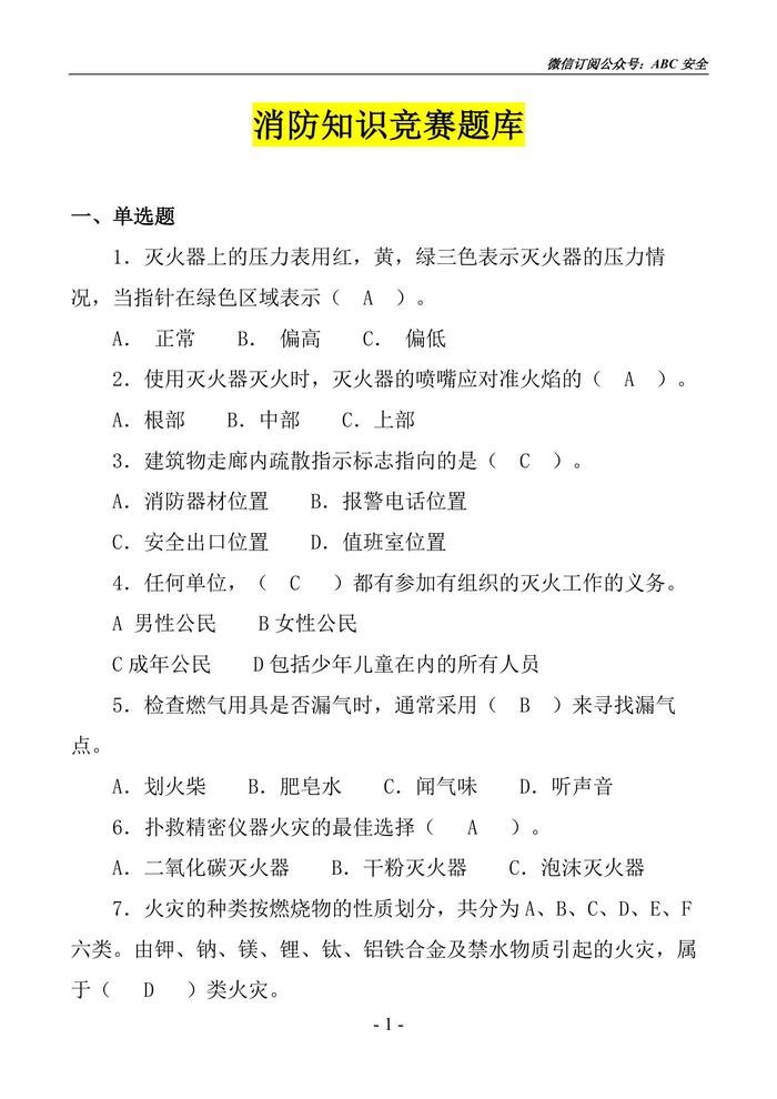消防知識競賽超全版題庫docx