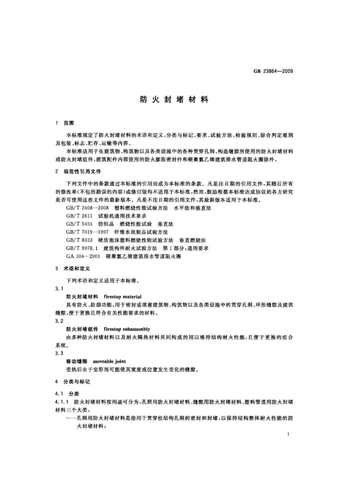 【國家標(biāo)準(zhǔn)】 GB 23864-2009 防火封堵材料 標(biāo)準(zhǔn)pdf