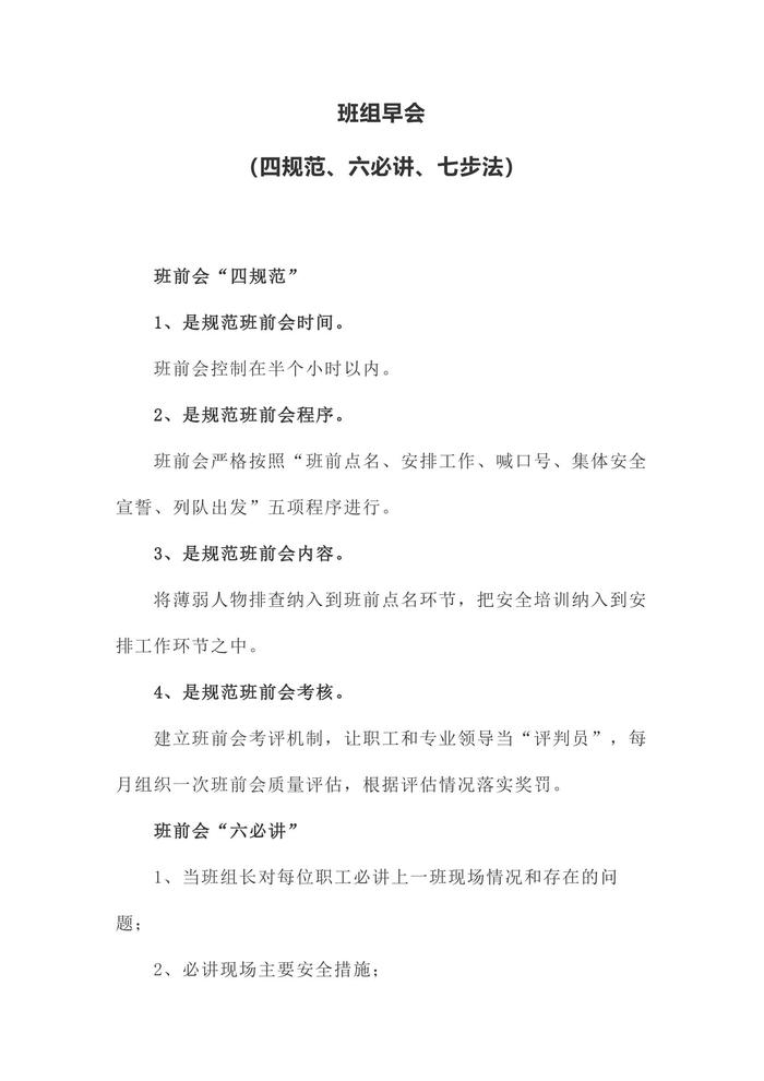 班組早會(四規(guī)范、六必講、七步法)docx 班組早會(四規(guī)范、六必講、七步法)docx