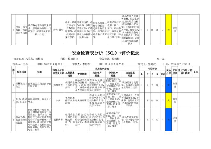 工作危害分析評價記錄+安全檢查表分析評價記錄doc